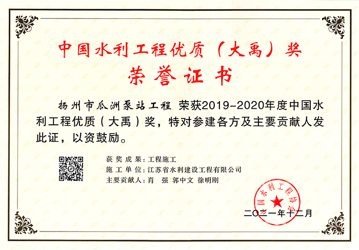 2022年度揚(yáng)州市建筑業(yè)先進(jìn)企業(yè)榮譽(yù)證書